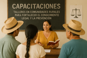 Talleres en comunidades rurales para fortalecer el conocimiento legal y la prevención.