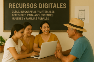 Guías, infografías y materiales accesibles para adolescentes, mujeres y familias rurales.